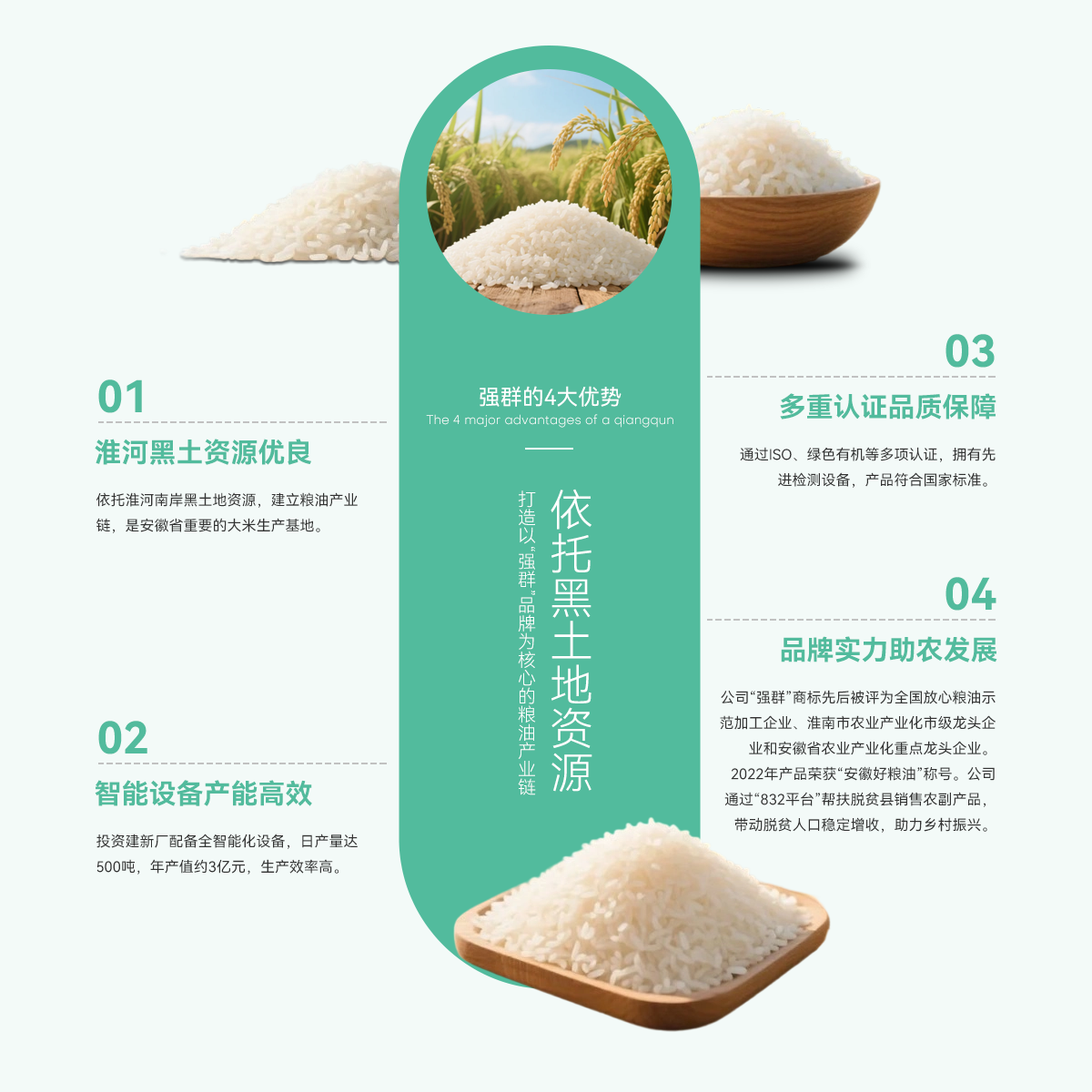- 壽縣強群糧油貿(mào)易有限公司成立于2011年,座落在淮南市壽縣澗溝鎮(zhèn),是一家集種植、加工、收儲、銷售于一體、以生產(chǎn)中、高檔質(zhì)優(yōu)、特色類大米為主的綜合性企業(yè)。公司依托準(zhǔn)河南岸的黑土地資源,打造以“強群”品牌為核心的糧油產(chǎn)業(yè)鏈,是安徽省重要的大米生產(chǎn)基地。 為響應(yīng)市場增長需求,公司2021年啟動二期擴產(chǎn)工程,其中新生產(chǎn)廠區(qū)建設(shè)投入資金近億元,建設(shè)現(xiàn)代化新生產(chǎn)線,總占地面積約4000...